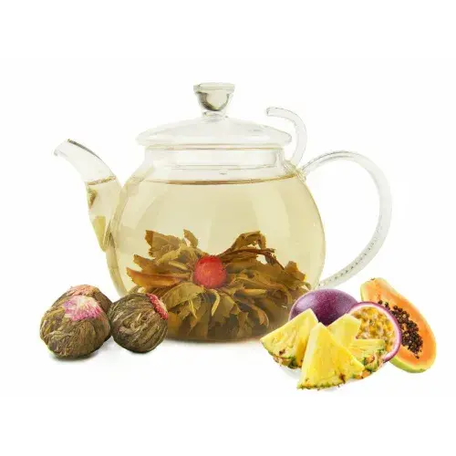 Зелёный чай из южных уездов Юньнань собирается весной и обладает ярким ароматом цветка клевера с нежным тропическим вкусом. Для его создания отбираются длинные верхние листья и едва раскрывшиеся почки, покрытые светлым ворсом. При заваривании чай раскрывается в эффектный цветок, создавая светло-янтарный настой с фруктово-ягодным ароматом.