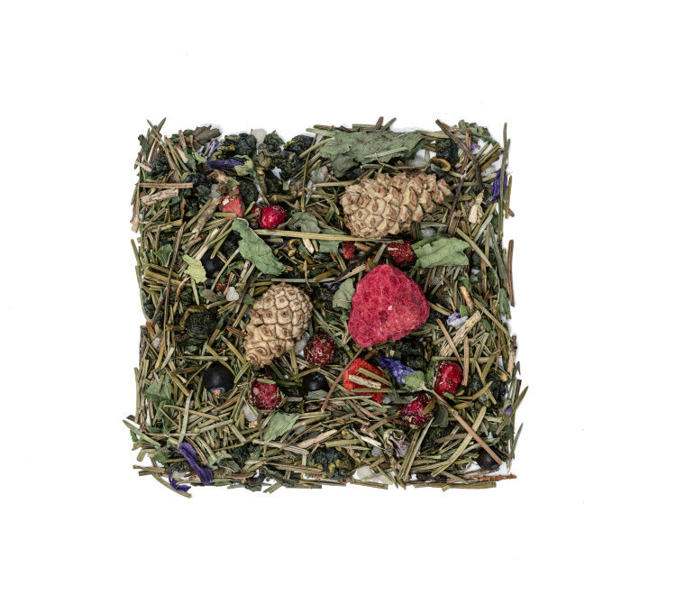 Заваривать 2-3 минуты при температуре 90-95°С, 4 гр. (2-3 чайные ложки) на чайник (450 мл). Состав: китайский бирюзовый чай, хвоя пихты, можжевельник, шишка сосновая, медовые гранулы, кусочки сублимированной клубники, сята, кусочки сублимированной малины, брусника, мальва, ароматизатор. СТО 58091875-001-2023 Хранить в сухом, прохладном месте